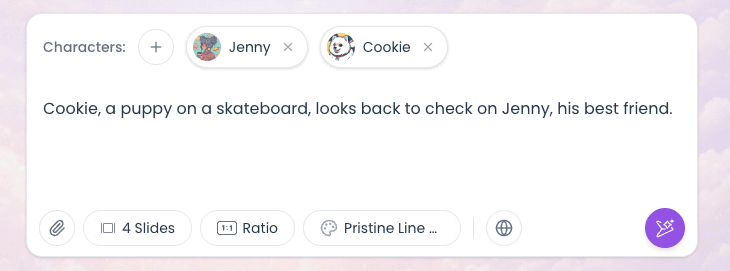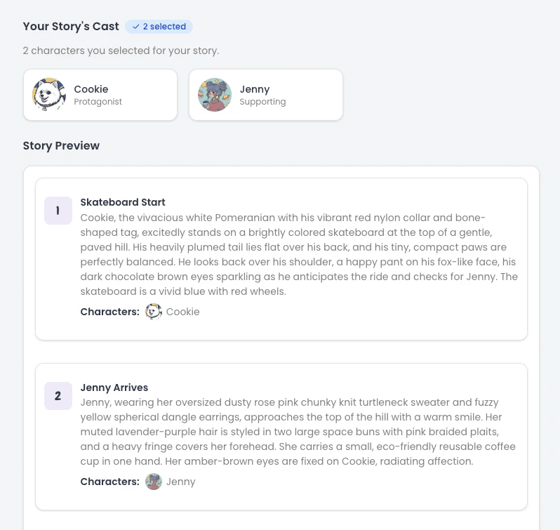 To keep your coloring book consistent, you create your characters once, then Lifetoon reuses them across every scene.